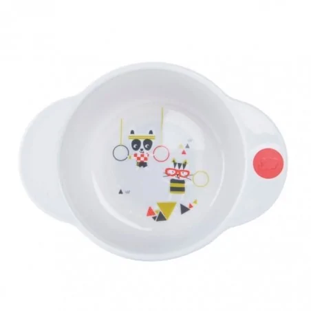 Utilisable au micro-ondes comme au lave-vaisselle, le bol décoré accompagnera bébé dans l’apprentissage du repas.