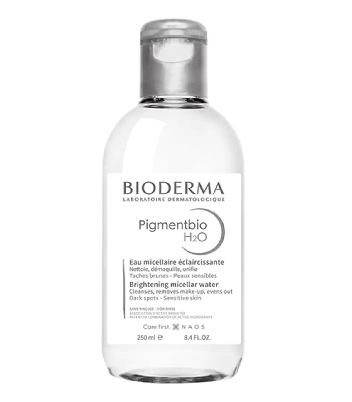 Bioderma Pigmentbio H2O est une eau nettoyante micellaire spécialement formulée pour les peaux hyperpigmentées, En raison de sa combinaison brevetée d’ingrédients actifs, qui régule les mécanismes biologiques responsables des taches sombres, ce produit nettoyant est la première étape parfaite de tout programme de soin dépigmentant, La formule douce, qui possède une très bonne tolérance cutanée et oculaire, élimine le maquillage du visage et des yeux sans provoquer d’irritation, ce qui la rend idéale pour les types de peaux sensibles.