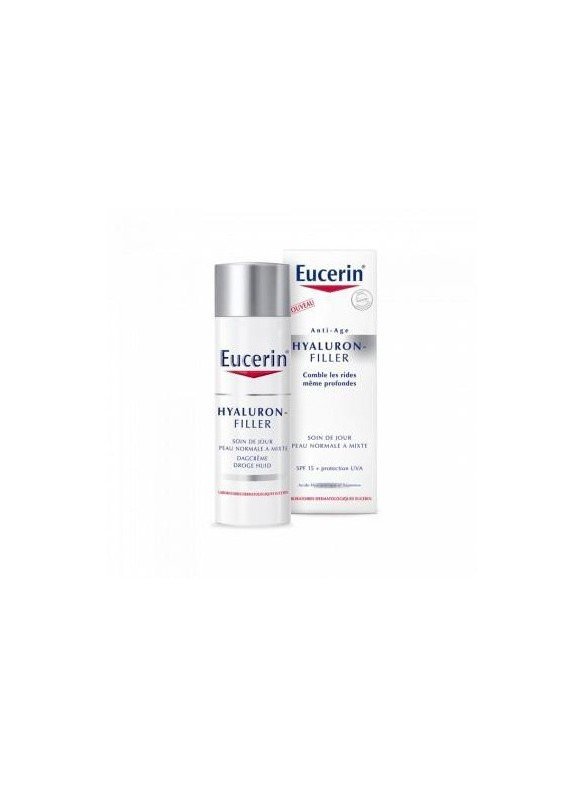 Soin de jour peau normale à mixte. Anti-âge. Comble les rides même profondes. SPF 15 + protection UVA. Acide hyaluronique et saponine. Avec l’âge, la teneur naturelle d’acide hyaluronique diminue : La peau perd de son volume et les rides apparaissent. Grâce à son action de comblement, l’acide hyaluronique redonne immédiatement du volume à la peau et réduit ainsi visiblement les rides. La saponine, ingrédient bioactif, stimule la synthèse naturelle de l’acide hyaluronique. Les rides même profondes sont comblées. Protection UVA UVB SPF15. CONSEILS D’UTILISATION : Appliquer une à deux fois par jour après avoir nettoyé votre visage
