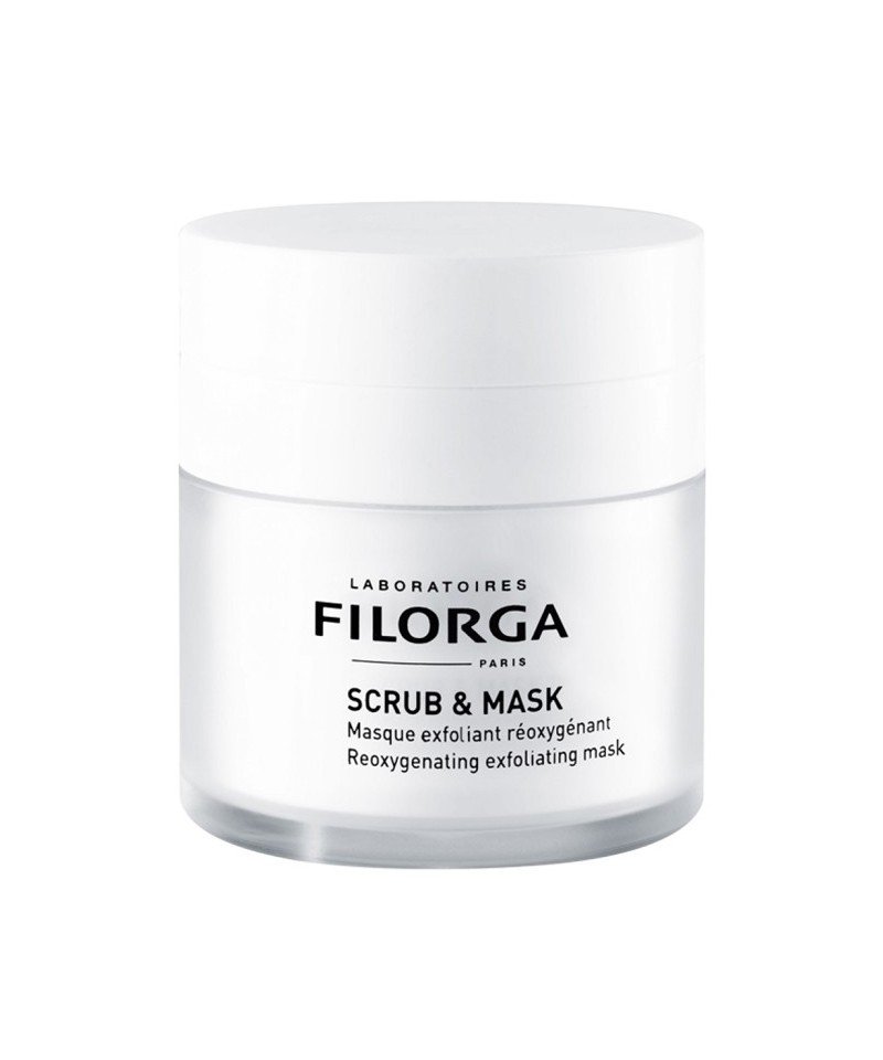 SCRUB & MASK est un exfoliant visage réoxygénant 2-en-1, qui se transforme en masque effervescent une fois le gommage réalisé. • Sa double exfoliation débute par un gommage effet peau neuve intensif : des sphères de perlite effectuent une exfoliation douce de la peau tandis qu’une enzyme protéolytique stimule la desquamation cutanée. Une fois le gommage réalisé, la texture du masque se transforme en une mousse de soin active : des micro-bulles d’oxygène se libèrent alors pour favoriser la respiration des peaux asphyxiées. • Résultat : 93% des femmes constatent un effet désincrustant, les pores sont réduits et la peau réoxygénée pour 86% d’entre elles.* • Adapté à tous les types de peaux, ce masque exfoliant visage anti-rides possède une texture crème onctueuse qui se transforme au contact de la peau, pour un moment unique de détente. • Le masque FILORGA SCRUB & MASK s’utilise 2 fois par semaine, en couche épaisse. Masser délicatement sur une peau propre. Une fois le gommage réalisé, laisser poser, la texture se transforme en une mousse de soin effervescente. Quand les bulles ont disparu, il est temps de rincer. Éviter le contact avec les yeux, en cas de contact rincer abondamment avec de l’eau – éviter l’exposition au soleil après l’application du produit et en cas d’exposition appliquer une protection solaire adaptée • Testé sous contrôle dermatologique. * Auto-évaluation – 30 volontaires – après mois d’application 2 fois par semaine de SRUB & MASK.