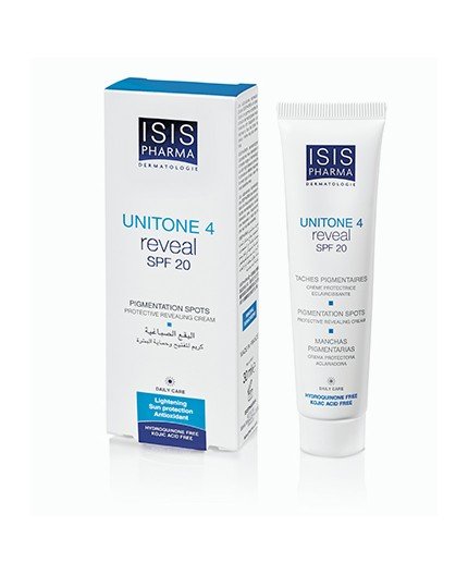 Apply UNITONE 4 Reveal SPF20 1 fois par jour, le matin sur le visage. UNITONE 4 Reveal SPF20 a été spécialement formulée pour protéger la peau contre les UVA et UVB. Propriétés
